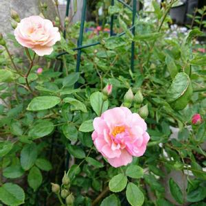 手前のオレンジっぽいお花は スプリングピクシーさん お花が咲き始めました♥️ ホワイトアーチの薔薇手前はロープ・ア・ラ・フランセーズ と向こう側から、こちら側に来ている薔薇コーネリアさん🌹 いつも一緒には咲かずにコーネリアさんが咲き始めてしまう💦 今回は、あと少しでロープ・ア・ラ・フランセーズさんも 咲いて来そうなんです( *´꒳`*)੭⁾⁾💕 クレマチスもご一緒してくれると良いんですけど🎶 どうなりますか゚.*・。゚♬*゜楽しみです💖