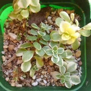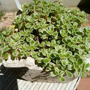 貰い物を植えてみたけど、お裾分けだったので名前不明。 調べてみた感じだと、奥の子はたぶん紫月?ルビーネックレス?かと思ってますが、手前の子がわからず💦(→斑入り丸葉万年草とこちらで教えていただきました💖ありがとうございます!) 水やりペースもわからず、とりあえず2週間に1度他の子と一緒に水やりしてるけど、ちょっと枯れてるとこあるから少ないのかな💦