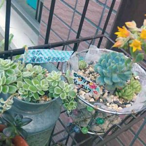 これまた名前がほとんどわからない多肉の寄せ植えなんですが にょきにょき育ってきてバランス悪くなってきたので そろそろカットしなきゃいけないかなぁ。 来年の春にはもうひと回り大きめの鉢に植え替えたいです。