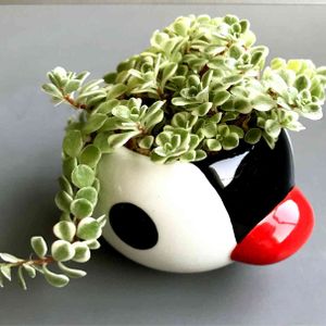 おひとり様たちを鉢減らしのために寄せ植え! 渋谷園芸さんで見つけた素焼きポットに(●´ω`●) いままで思考錯誤してたけど 今回の寄せ植えは好みにできた感じ! どこから見てもかわいい❤️ セダムはカットして挿してるだけなので 早く根っこが出てほしいな〜!