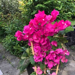 母の日に娘からもお花を貰いました。憧れのブーゲンビリア🥰 でも此処は北緯50度ずっと諦めてたんです。 娘曰く「ママで実験」だって え〜そう言う事 昨日の夜家に入れてまた今朝外に出して。最低気温が8度は必要なので当分ブーゲンビリア運動が続きそうです😅