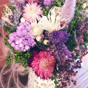 娘の彼は本当に優しい子なんですよ。私のプレゼント🎁に子供達全員で自転車を買ってくれたんですが(サイクリング用)それにも参加してくれ、そしてこの可愛いドライフラワーもプレゼントしてくれたんです。入ってる鉢も素敵。こんな優しい子で働き者の子なら将来娘と結婚しても大丈夫かな🙆♀️って思ってます。😌
