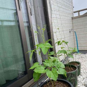 モロッコインゲンの赤ちゃん💕 グリーンカーテンも兼ねての栽培ですがぐんぐん伸びて窓の上まで達しました。 ただ今のところ思った程茂っていません。。 (左下が苗を植え付けた時、右下が現在) 鉢で育てるのは初めてですがどんな成長を見せてくれるのか^_^ 備忘録:化成肥料を追肥