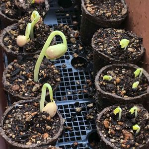 土に馴染むというポットに蒔いた インゲンとオクラ。 本葉が出たら畑に植えよう🌱