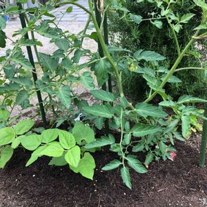 ミニトマト2株の隣にはいんげん(つるなし)を植えました。