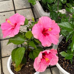 今日のハイビスカス🌺ロングライフシリーズアドニスピンク3輪😊インドアハイビスカスサニーシティ赤1輪😊常夏🏝️🌺🌺🌺