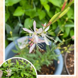 このpic の主役は、ガウラです‼︎ 🤣 うまく撮れずにごめんね🙏ガウラさま… これでもあーでもないこーでもない…と、30分くらい粘ってたら、西日が差してきた📸✨🤣 今日お迎えしたガウラさまと、蕾のついたミニ薔薇と、元気を取り戻した植えっぱ苗 ビデンスを一緒に撮りたかった…📸 そうしたら、近所のおばさまが「寄せ植えきれいね〜🪴」と、いらしたので、ベビーサンローズの挿し芽のついた黒ポットをおすそ分けしました😃 まだまだあるで〜🌸☘️🤣