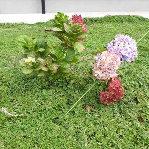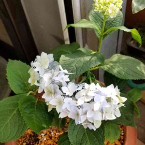 こんにちは👋😃 紫陽花、霧島の恵 植え替えて、汚い花取り除きました。 背の高い花が色づいたら、バッサリ切り戻しします。 葉っぱも、元気そうで植え替え大丈夫そうです。 鹿沼土、赤玉、腐葉土、培養土、マガンプK、 オルトラン、 混ぜて、植えました。