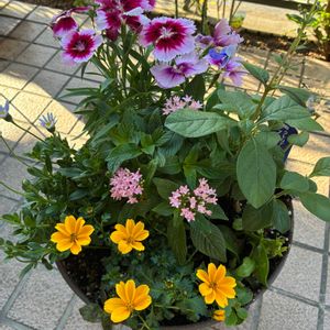秋の寄せ植え 少し明るめにしました🩷 2番目のは、かなり大きめの入れ物でどうしようかと思ったのですが、急遽、入れ替え背の高いのがある方をサロンにしました❤️😘
