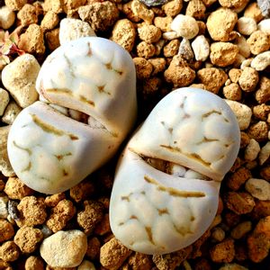 リトープス 脱皮から1ヶ月超え やはり分頭無し。調べたら分頭は2年に1回とあったので今年はただの脱皮年だった様子…脱皮すると新葉の向きが変わる辺り植物っぽさが出てるなと思ったり