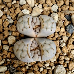 リトープス初脱皮中🧐 私も一皮剥けたいっ! 写真撮るの難しい🤔📷️