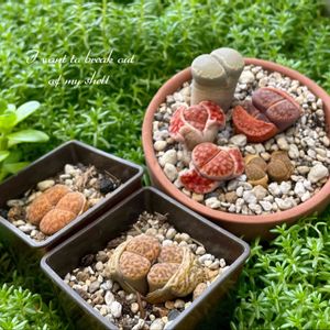 🌵リトープス🌵 ただ今、脱皮中✨手前の方は双子ちゃん? 分頭して株が増えそうです😁💕まるで出産しているみたいで私はハラハラドキドキ😅💦 ガンバレー!!と見守ることしかできません📣('ᴗ' )و💕