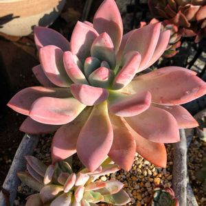 我が家へ来て、今が1番大きく元気そうな すみれ牡丹(根腐れ経験有り) うっすら紅葉✨優しいピンク💕