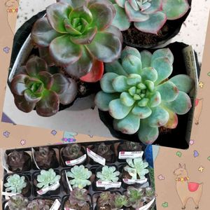 大型店のDAISO、娘が近くでバイトをしているので、『休み時間ちょっと見てきて🙏』『めんどくさいなぁ〜』と、結局帰りに見てきてくれ写メを撮ってきてくれました。←昨日のこと 今日早速🚙行ってきましたよ〜ε===(っ≧︎ω≦︎)っ また💦名無しエケベリア同じ子だと思いますが立派な苗だから2個… 『グリーンネックレス』 アーモンドもいたのですが、状態が少し悪くて諦めました💧再会を願う🙏 観葉植物の『パープルコンパクタ』形と名前が気に入ったので連れ帰り〜 さて、名無しエケベリアさんはどなたでしょうか?教えて下さい🙏 私は、検索でチワワエンシス?か、ピンクプリティ?と思ったけど、ピンクプリティーはクラプトベリアだから違うし、だとすると、メキシカンスノー?も可能性がある、でもなかなか100均ではお会い出来ないみたいだからそれはないかな💦 1番濃厚はチワワエンシスですが、どうでしょうか❓ 全部オンスローだったりして(笑) でも、オンちゃんとはちょっと違うんだよなぁ〜🤔 見分けられん😤ꉂꉂ(˃ᗜ˂๑)笑😤しゃーないよ、ど初心者だから😥