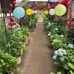 奈良県橿原市おふさ観音です。 提灯 風鈴 バラ🌹 紫陽花 アカンサスモリスも