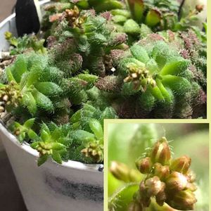 元旦に投稿した ソシリアリスspトランスパール ツボミ部分が変化したよ ひとつひとつに 沢山のツボミ? 久々にマクロレンズをつけて パチリッ🤳 我が家で初の 多肉植物の花🌸🌸🌸 咲くかもしれない ワックワクです∩^ω^∩