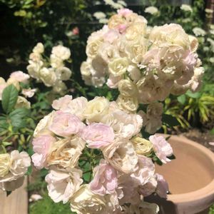 2〜3年前 バラとガーデニングショウの時に仲間入りした群舞が咲いてくれました😊 今年は引っ越しもあったり、うどん粉病になったりいろいろあったけど、たくさん咲いてくれました❣️ 小さなピンクの蕾もいっぱいです🌹
