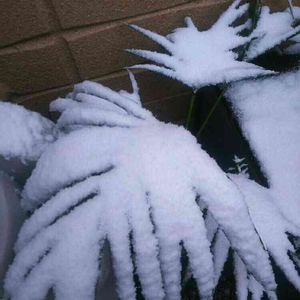 そこそこ降りました。 温室外のヤシには積もってます。 現在0.3℃ほどしかないためここからどこまで下がるかちょっと怖いです💧