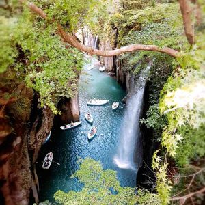 高千穂峡🏞️ 雨☔の中、緑が美しい! (◍•ᴗ•◍)❤(*˘︶˘*).。*♡