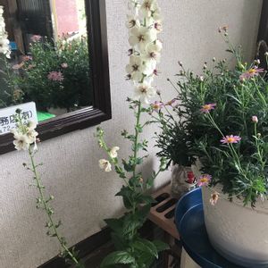 写真2/2(拡大写真)スコットランドのウォールガーデンに咲いてたのっぽの白いお花💛モウズイカ(バーバスカム)属のシロバナモウズイカ?だと教えて頂きました❤️ありがとうございます😊