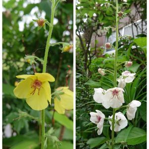 母の山野草からエサシソウの黄花💛白花(別名シロバナモウズイカ)♡ バーバスカムの仲間💞 花が上まで上がるのを待ってたら雨で落ちちゃった💦 もう何十年と咲いてくれてマス💓 デモ二年草なので、去年はお花は見れず😹 だいたい同じ場所で咲いてくれるケド、白花が今年は6mくらい離れた所で🌱 芽が出た時、雑草と間違って抜かないように気をつけないとね😽 ヨーロッパからの帰化植物で北海道では野生化してるそぅ💦 江刺市で発見されてこの名前らしいデス💓(ググッタ😹) 昨日のルノーサマにも落ちてた白花をそえました😿 そして今日も又ジュレる💦 朝発見したピチチャン、どうにか葉刺しできるか? 夕方発見した春にチョンパし、2個子吹いてた王妃錦司晃サマ💦 小さい方の子吹きは🙅🏻× 雨のあとの急激な暑さ💦 朝一でシュポシュポしたケド、助けてあげられずゴメンニャサイ🐈