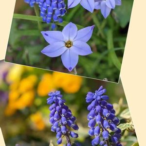 上はムスカリとハナニラ?でしょうか 自然に生えてきました💟 増えるといいな☺️ 下はアイビーの中から、植えてないのに毎年ひょっこり出てくるムスカリ💟 嬉しいサプライズです🥰