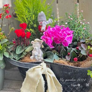 𓈒 𓏸𓈒𓂂𓂃☀️𓂃𓈒𓏸︎︎︎︎ クリスマス仕様にちょっと飾りを置いて見ました🎄💕 ゴールドクエスト 花かんざし シクラメン2種 チェッカーベリー ②③ 今月初めに行った、スヌーピーミュージアムのクリスマス🎄💕