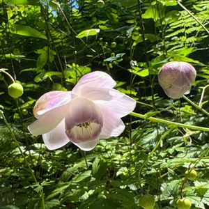 こんにちは😊 レンゲショウマ 高尾山の野草園へ森の妖精レンゲショウマに会いに行きました😆 レンゲショウマは日本固有の1属1種です。 1枚目のこの子は珍しく上を向いて咲いていてお花の様子が良く分かりました😍 4・5枚目の蕾も可愛く薄紫の色が綺麗です😊 暑さのせいか去年よりお花が小ぶりでした😂