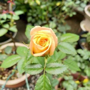 おはようございます。 ややオレンジがかった黄色のはずですが、オレンジですね。 中輪、カップ咲きでかわいいです。