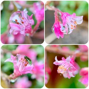 雨は止んだようです。 雨上がりは花についた水滴が幻想的な姿を見せてくれます。 小さな桃色ツボサンゴは綺麗な容姿です😊