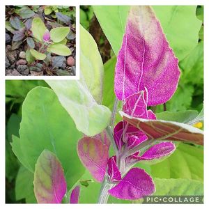 空き地等に自生するアカザは庭のあちらこちらで 勝手に生えるアカザ。 花の少ない時期なのでそのまま楽しんでいますが、 邪魔物扱いしてたら、穀物のルビーと言われ、 ほうれん草と同じ仲間で食用となるそうです😋 ↖️可愛い赤ちゃん苗も、もう赤いよ😊