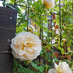 Clematis - florida Thunb. var. sieboldiana Morren - Rose - Marc Antoine Charpentier - ࿐*:❁︎.。 クレマチス - テッセン - バラ - マルク・アントン・シャルポンティエ - イエローからクリーム、ホワイトに 変化するバラ