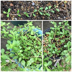 こんにちは☀️ 6月末に水挿しで根を出したリッピア、ヒメイワダレソウ。 鉢上げして少しずつ大きくなりました🌱 3つのうち花の咲いた1つはグラウンドカバーを期待して地植えにしてみています🌱😊 あと2鉢はどんどん育っています🌱