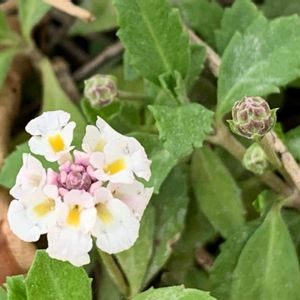 今朝の一枚です! おはようございます😃 私の可愛い💕子たち。 左上の小さい花は、芝生のように地面に広がってとても可愛いお花が咲いてました^ ^ ランタナが小さく小さくなったようなお花でした🌸