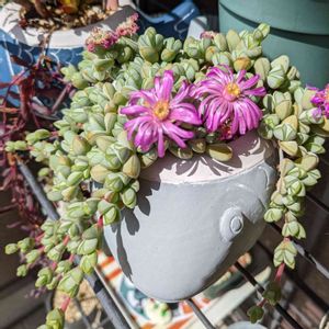 ルビーネックレスに花が咲いたヽ(´▽`)/ 1号鉢からすくすくと育ったけど、葉っぱが丸っこくならなくて細長い(^_^;) 同じオトンナ属のクラビフォリアも葉っぱが全く同じく細長くしかならずで😅ベランダでは光量が足りないのかな…☀️