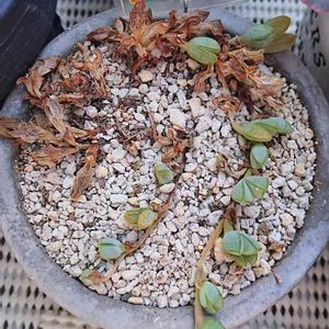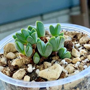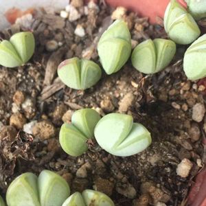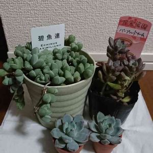 ツルナ科 ブラウンシア属 碧魚連 夏は休眠 風通しの良いところにいるけれど、この梅雨がねぇ… 1週間雨が降るみたいだけど大丈夫なんだろうか… 魚がパクッと口を開けている様子…なるほどね⭐️ 春から冬にピンクのお花が咲くらしい まだまだ小さな碧魚連。これからの成長が楽しみ(*´-`)