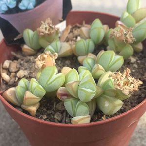 多肉ラボ©お題「夏越し」 今年3回目の夏越しです。昨夏は個人的に色々あって多肉のお世話が全く出来ず、理想とは程遠い夏越しになりました😱 今年は頑張ります🙄 ビッグサイズに育っていた「花うらら」と「古紫」を西日で、斑入りグリネとリトルミッシーを暴風と蒸れでダメ☆にしました😭 あとは「碧魚連」と「雪の妖精」「玉蓮」「ベニマリス」「ペンデンス」が瀕死の状態が瀕死の状態になりました😭 今年の夏越しの課題は ①置き場所の棲み分け ②遮光ネットの張り方の工夫 夜な夜な「みどりのまとめ」に手を加え続け、「暑さが苦手」🏷を付けました。これも夏越しのための準備😅備えあれば憂いなし💦 picは、碧魚連🌱 これも夏越し対策の一環「保険株作っとこう!」で、冬の間にしっかり生長したところを3/14に一節ずつバラバラにしてカット挿ししたのがビニポットの子🤩もう根付いて新芽出てきてます💕白い鉢は親株です。 「たっちんの碧魚連」タブをタップでこの子の生長記録のみどりのまとめが簡単に見れます😊🎵 「多肉ラボ©」参加のお申し込みは、1/17のブロンズ姫の投稿からお願いします🤗🌱