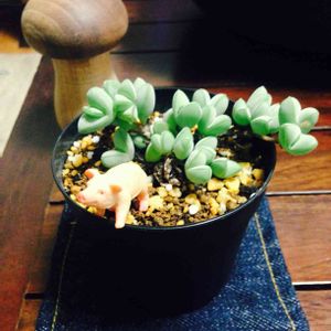 植替えしたいけど鉢が無いからブタさん乗っけてみました(*ノε` )σ ギョギョさんて冬型なのね✨ どなたか増やし方を教えてくださいm(__)m前回失敗したからトラウマ抱えております(ノд-。)