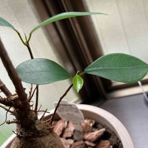 おはようございます❗️ ガジュマルの葉っぱが全部枯れて落ちてしまいましたが、ここまで復活しましたよ~😊 それまで外に置いたり、どこがいいか分からず転々としてましたが、落ち着いたみたい🎵よかった~
