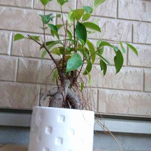 ガジュマルさん(=´∀`)ノ 冬なので、暖かいリビングに置いていマス。 素焼き鉢は、ターナーミルクペイントで塗装しますシタ。
