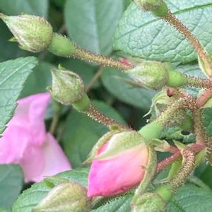 数年前の台風で倒壊した小さなアーチの薔薇を裏手に移植し見守っていました やっと可愛い蕾がつきましたよ❣️ 名前を忘れてしまいましたが、植物ってやっぱり素晴らしい(๑>◡<๑)