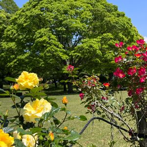 🏷 ビューティフルサンデー 🏷 スカッ晴れ 参加させて頂きます 公園は緑と薔薇が真っ盛り 欅とつる薔薇 今日は雨模様です