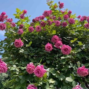 つる紫雲 今日は午前中に時間が空いて、京成バラ園へ行ってきました🚗³₃ 割と空いていて、ゆっくり眺められました😊 先週末の嵐で、かなりのバラが傷んでしまってたのが残念です😢