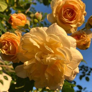 淡いアプリコットのバラが夕陽を浴びてエッという姿で スマホに飛び込んできた。オレンジの力強いバラに一変。 どちらも本当の姿なのだろうと思えてくる。