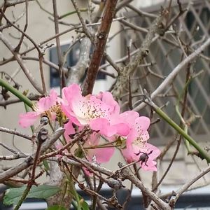左に出たベーサルシュートは去年の暑い時にビュンビュン伸びて2階に届き、本線くらい太くなったため、あ、これもう倒すの無理だわーとプロのバラ園さんに誘引お願いしました。 見事に壁に付けていただいたので春が楽しみデス。 芽が動く前に網戸も貼り直ししませんと見た目が残念にw