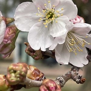 昨日の昼休み 近くの公園へウォーキングに🚶♀️ サクラの花が開いてました🌸 足を止めて、パチリ📱