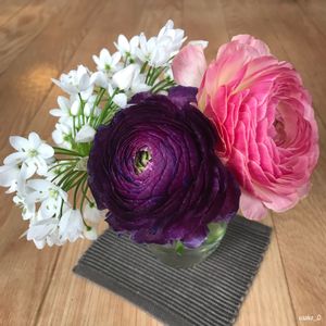 昨日のお花にモロッコタイプのラナンキュラス2本追加してみた。 どうだろうか?🤔