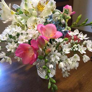 少し離れた所に住んでる 友達にお誕生日のプレゼント❣️ 花キュウピットで…。💐 これはお花屋さんで展示 してた花束です💐
