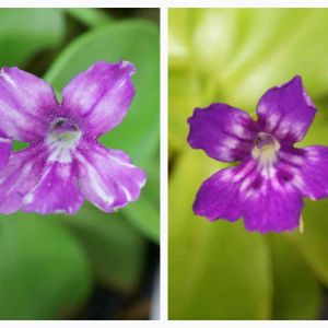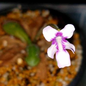 Pinguicula zecheri 先月に続き咲きました、今回は2花同時に開花。 右は先月咲いた花、左は今咲いている花。同じ株から咲いてるのになんか感じが違う・・・、暑さのせいでボケたか???