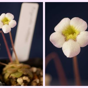 鬼人手(Pinguicula medusina x moctezumae)が開花 葉も展開し始めています